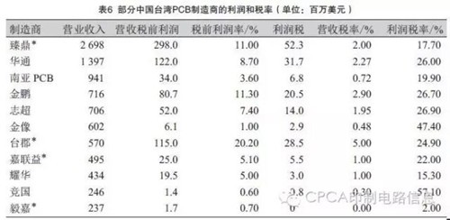 作者在編寫本報告中研究了許多PCB制造商的財務報告。人們可能會認為較低的收入將意味著利潤出現赤字,而對中國臺灣PCB制造商而言這是不正確的。一些中國臺灣制造商盡管沒有好的營收增長卻有非常好的利潤增長,一些制造商營收減少而仍保持盈利。他們各自的財務績效令世界PCB制造同行羨慕,見表6。盡管如此,隨著價格競爭的加劇,他們的利潤每年都在下降。全球PCB市場總產量是有增加,銷售總值的下降主要是由于貨幣的影響,但持續的價格削減也有很大的影響。不管PCB制造商規模是大或小,底線是有利可圖。