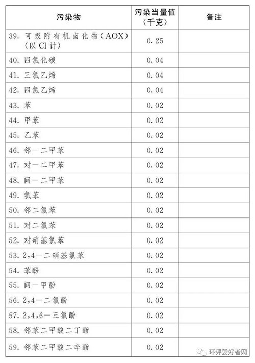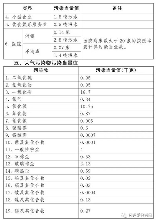 (一)污染當量,是指根據污染物或者污染排放活動對環境的有害程度以及處理的技術經濟性,衡量不同污染物對環境污染的綜合性指標或者計量單位。同一介質相同污染當量的不同污染物,其污染程度基本相當。