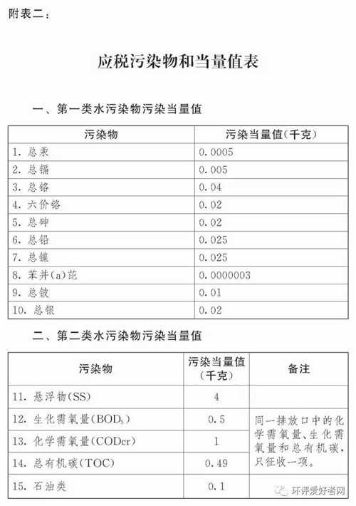 (二)應稅水污染物按照污染物排放量折合的污染當量數確定;