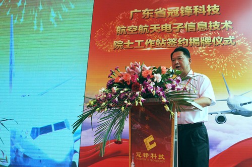 陳志杰院士、尚忠副市長、朱國城書記、盧育輝秘書長、林能文董事長共同為廣東省冠鋒科技航空航天電子信息技術院士工作站揭牌。