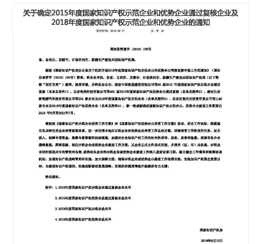 根據《國家知識產權局辦公室關于組織開展2018年度國家知識產權示范企業和優勢企業考核復核申報工作的通知》(國知辦函管字〔2018〕190號)申報要求,我司于2018年5月在網上提交了申請認定材料,經梅州市知識產權局初選和廣東省知識產權局擇優推薦、國家知識產權局組織評審,認定我司為國家知識產權示范企業。公司在實施創新驅動發展戰略、加快知識產權強國建設的新形勢下,積極配合國家和廣東省知識產權戰略的制定和實施,大力推動國家知識產權示范企業培育工作,發揮好示范企業的中堅作用。我司致力于成長為一個知識產權數量較多、質量較高,知識產權保護和運用能力較強,具有區域影響力的示范企業,影響和帶動相關領域的企業運用知識產權,有效提升市場競爭優勢。