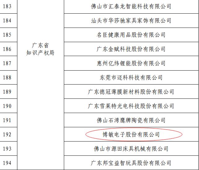 近年來,公司十分重視知識產權創新管理和保護等工作,逐步建立了完善的知識產權管理體系,公司成立有專門的部門來管理知識產權工作,建立了知識產權管理小組和溝通機制,充分落實其他管理機構與知識產權管理機構相關的知識產權工作,確保知識產權管理體系有效運行。公司于2010年獲評“廣東省知識產權優勢企業”,2012年獲評“廣東省知識產權示范企業”;2015年通過《企業知識產權管理規范》(國家標準GB/T 29490—2013)體系認證,是粵東地區首批通過知識產權國標貫標體系認證的企業;2016年,公司被廣東省審協中心認定為首批“專利審查員創新實踐基地”,被國家知識產權局認定為“國家知識產權優勢企業”;2016-2017年,公司連續2年承擔廣東省專利技術實施計劃項目,并在國家知識產權優勢企業2017年年度考核中被評為“優秀”;此外,2017年公司榮獲廣東省第四屆專利獎“優秀獎”,被省、市兩級知識產權部門認定為“知識產權重點保護企業”。