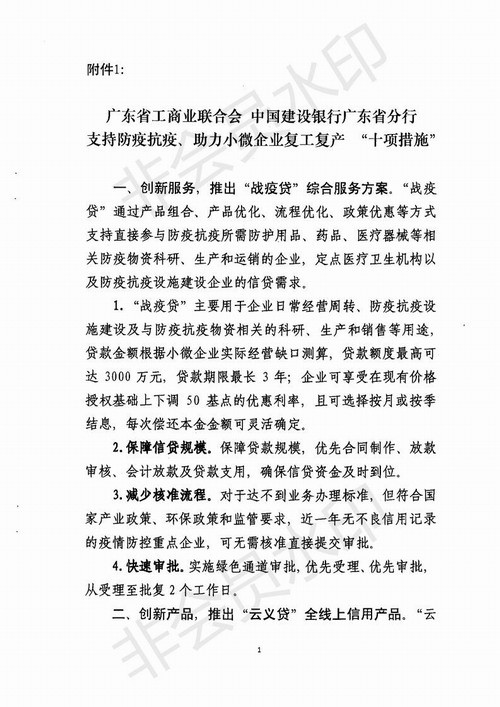 廣東省工商業聯合會+中國建設銀行廣東省分行關于共同支持防疫抗疫、助力小微企業復工復產的通知