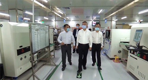 廣東精榮科技有限公司位于五華縣城工業園內,生產的電腦主板銷往全球各地。李希深入生產車間和實驗室,與企業負責人、研發人員及員工代表進行交談,強調要堅持自主創新,沉下心來下大力氣掌握更多關鍵核心技術,并要求政府營造良好營商環境,支持幫助企業在應對挑戰中實現更好發展。
