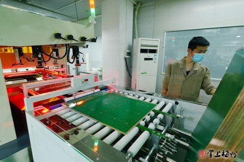 在梅州科捷電路有限公司,各生產(chǎn)車間內(nèi)自動化、智能化生產(chǎn)設(shè)備高速運轉(zhuǎn)。