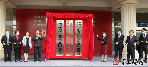 儀式上宣讀了市編委會《關于東升工業園區體制機制改革有關機構編制事項的批復》,以及梅江區委組織部《關于設立中共梅州市梅江區東升工業園區工作委員會的通知》文件;領導嘉賓共同為“中共梅州市梅江區東升工業園區工作委員會、梅州市梅江區東升工業園區管理委員會、廣州增城(梅江)產業轉移工業園管理委員會”揭牌。