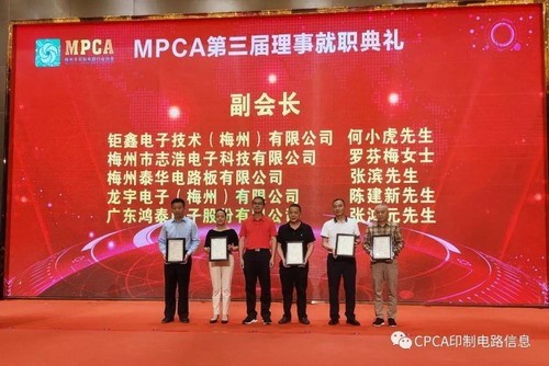 2021年4月8日,梅州市印制電路行業協會(以下簡稱MPCA)第三次會員代表大會暨第三屆理事會就職典禮在梅州昌盛豪生大酒店舉行。CPCA名譽秘書長王龍基、副秘書長李瓊、顧問張瑾受邀出席。