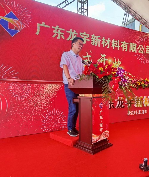 首先由龍宇集團董事長陳建新先生致辭。陳總首先代表龍宇集團全體同仁向各位領導和來賓表示熱烈的歡迎和衷心的感謝。簡單介紹了廣東龍宇新材料有限公司后,陳總表示龍宇覆銅板新廠的投產,將為打造每月200萬張高端覆銅板奠定方向,新廠的投產既是龍宇集團發展的里程碑,也是企業做大做強的新起點。陳總說經董事會研究,將會對廣東龍宇的總投資額從5億元加大到10億元,陳總也表示會繼續為產業新發展努力作為,使企業早日步入高速發展的快車道!