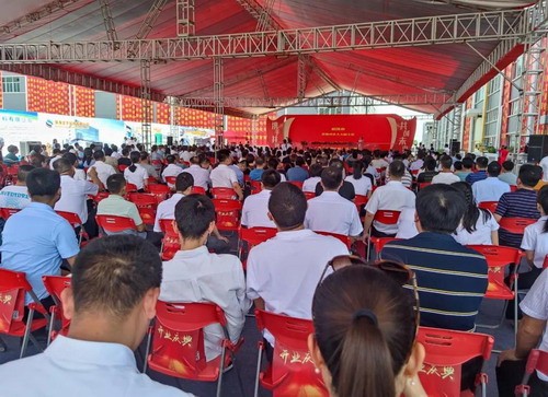 在喜慶的鞭炮聲中,各位領導嘉賓上臺共同為廣東龍宇新廠開業推桿,祝愿廣東龍宇新廠開業大吉,祝愿龍宇的明天更加欣欣向榮。