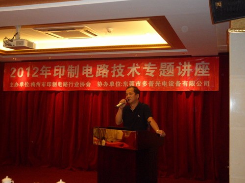 2012年7月10日,由梅州市印制電路行業協會主辦、東莞市多普光電設備有限公司協辦的《2012年印制電路技術專題講座》在梅州市華豐新酒店8樓會議室隆重舉行,本次專題講座為期一天,有32家會員單位、160多人出席參加。